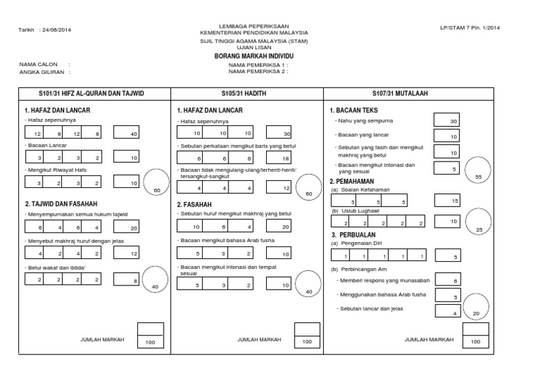 Contoh Format Permarkahan Ujian Lisan Spi T6 Pdf